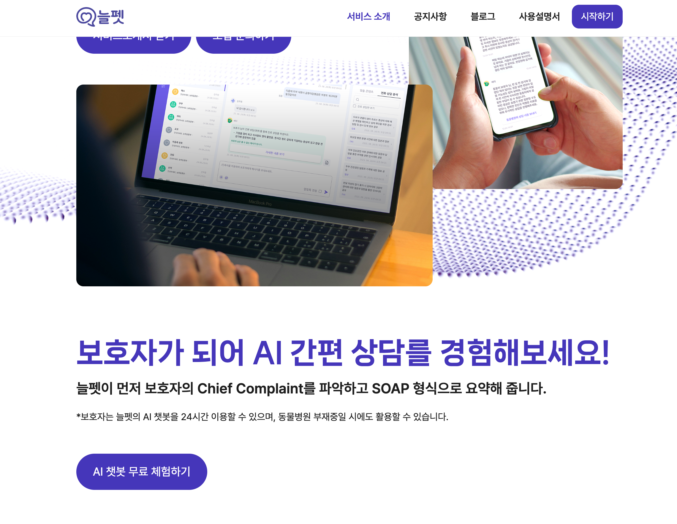 안녕하세요. 보호자의 마음까지 케어하는 따뜻한 혁신가들을 위한 늘펫입니다.