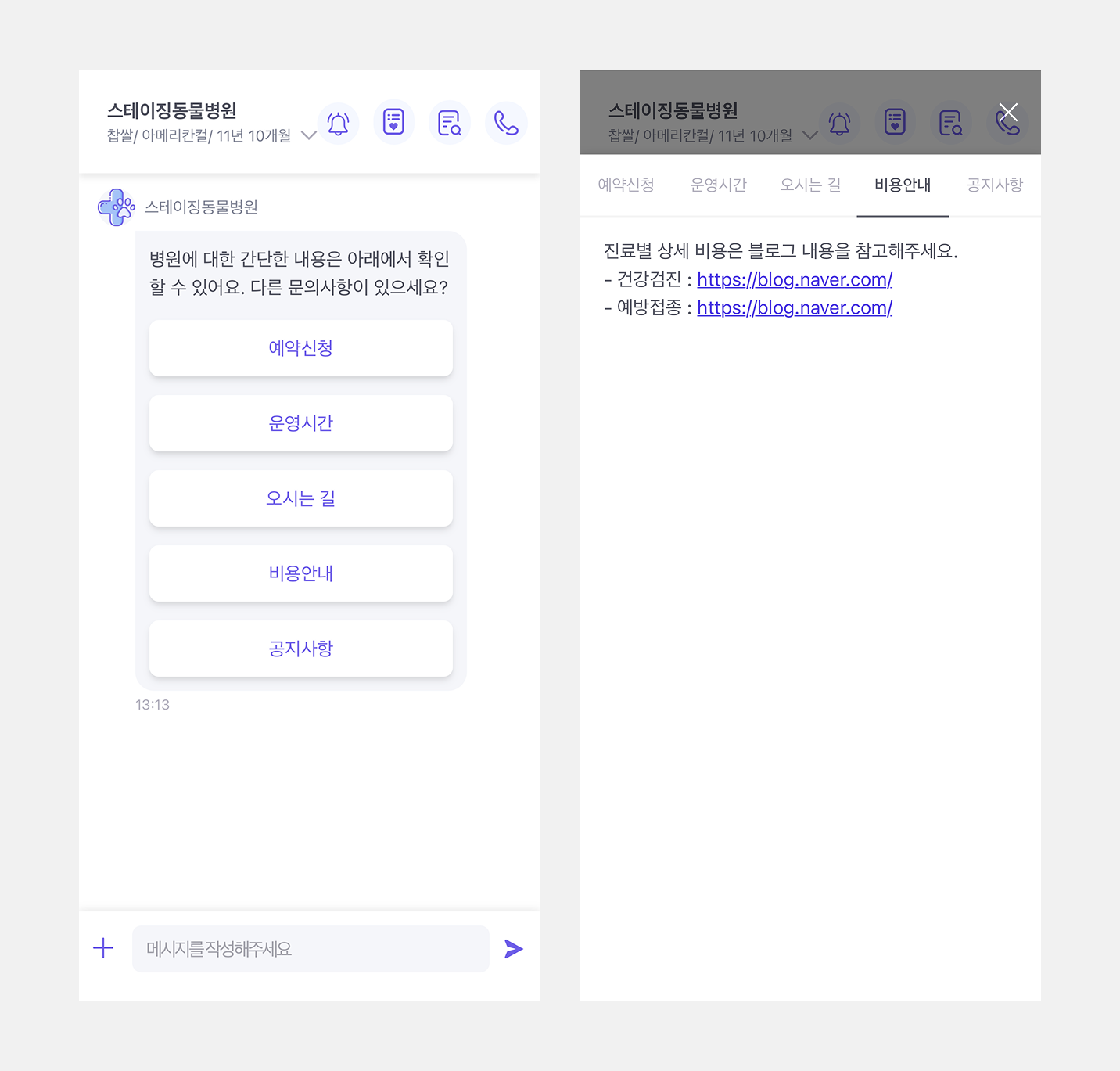 안내 메시지에 블로그, 예약 페이지 등 외부 링크를 넣어두셨나요? 이제 보호자가 채팅창에서 링크를 바로 클릭하여 이동할 수 있습니다.